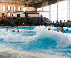 在具體選擇造浪機的類型時,應充分結合業(yè)主的要求和產(chǎn)品的技術參數(shù)。在一定的產(chǎn)品技術參數(shù)下,不同的場地對波浪的風格、類型和高度有不同的要求。造浪設備和系統(tǒng)應盡可能放置在深水端。在造浪池的水循環(huán)中,應在淺端設置排水溝,進水方式應設計為池底均勻進水。控制平衡池的進水和排水間接控制造浪池中水的平衡。為了定期消毒造浪池中的水,保持平衡池中游離氯的濃度不低于池中的數(shù)值。造浪池制浪時,應采取措施防止池水回流。造浪池的最大人數(shù)負荷按每人2.5平方米計算,池水循環(huán)周期應小于9小時。